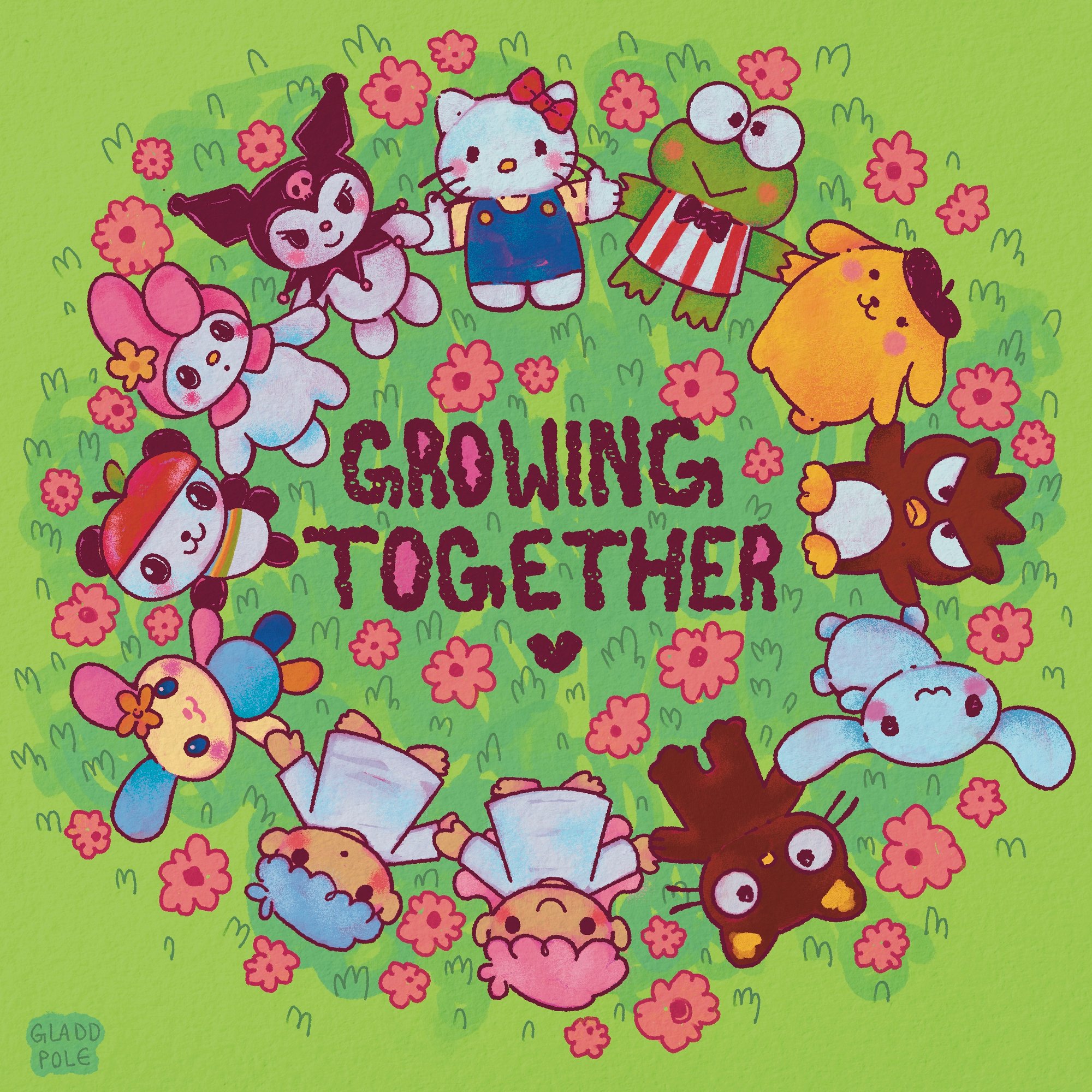 Sanrio characters in a circle of flowers growing together - Glossy print - If you'd like your print signed by me, please let me know in your order notes! :o]