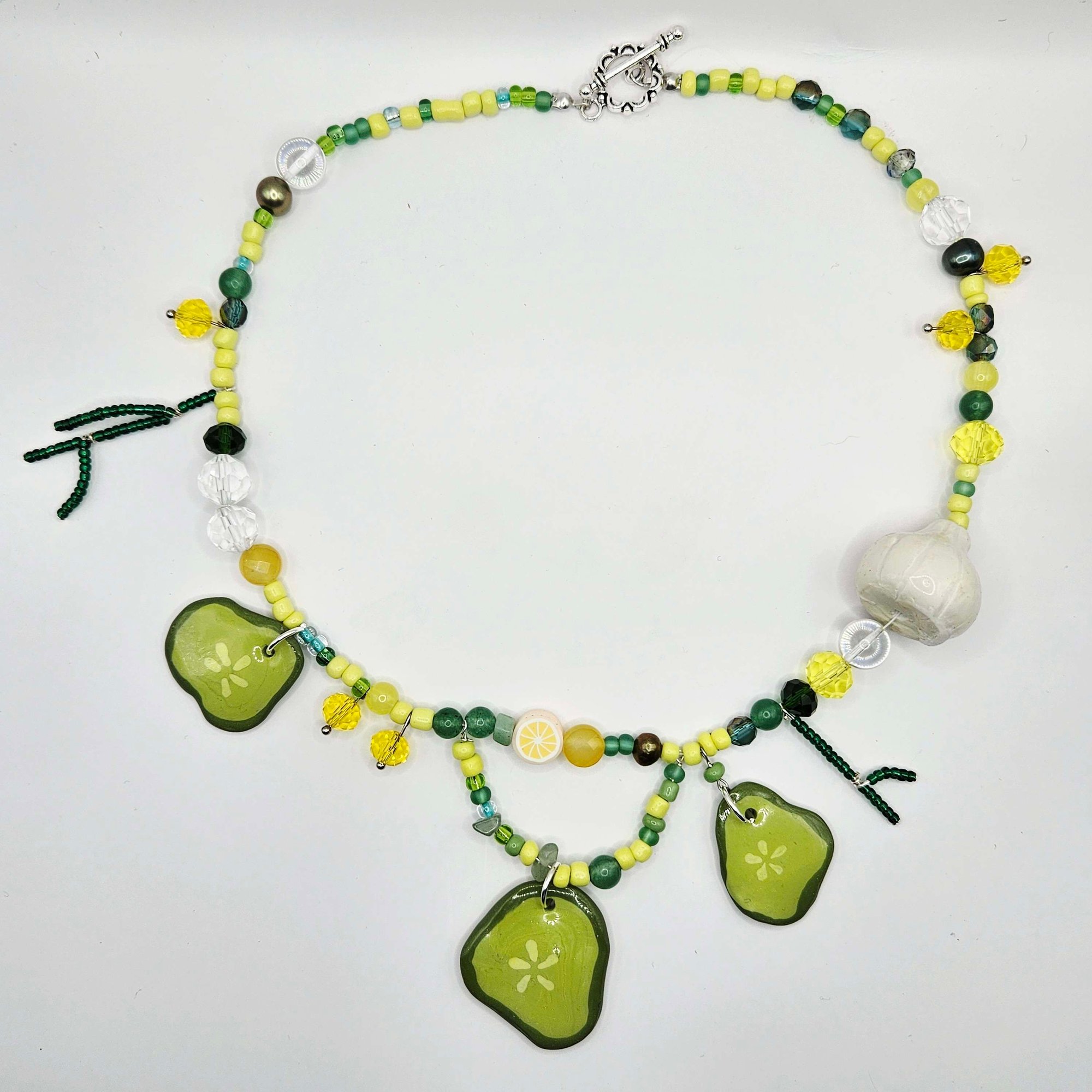 Clay pickles mixed beads necklace with garlic and dill